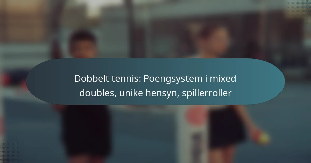 Blandet dobbeltennis har et særegent poengsystem som kombinerer elementer fra singelspill og tradisjonell dobbel, noe som krever at spillerne forstår reglene for å unngå poengfeil. Samspillet mellom mannlige og kvinnelige spillere introduserer unike dynamikker, som understreker viktigheten av kommunikasjon og strategiske justeringer. I tillegg tar spillerne ofte på seg spesifikke roller basert på sine styrker, der den ene fokuserer på spill ved nettet og den andre på dekning av grunnlinjen, noe som fremmer en balansert lagtilnærming.